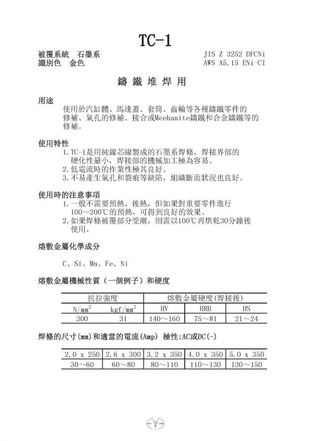 鑄鐵堆焊用