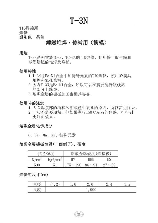 鑄鐵堆焊・修補用(衝模)