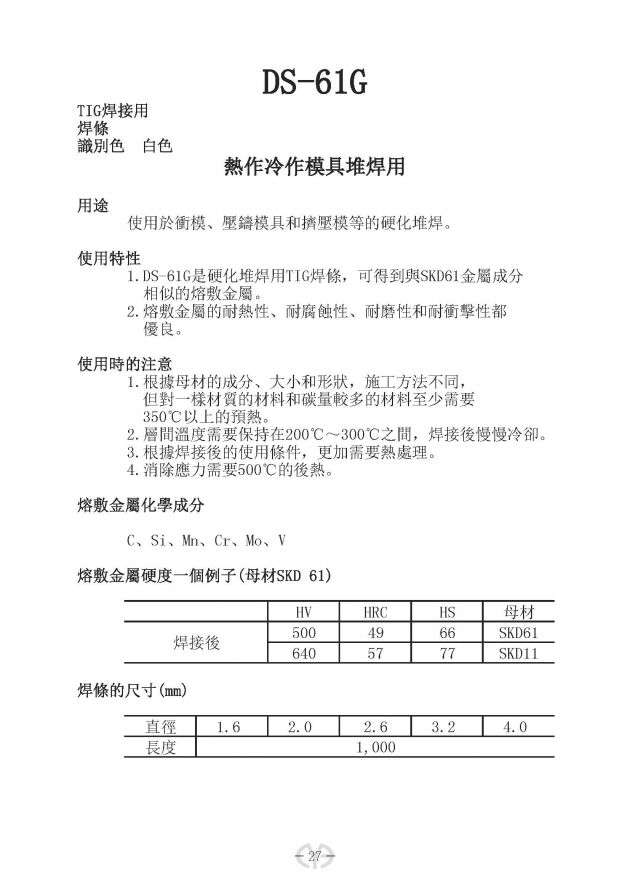 熱作冷作模具堆焊用